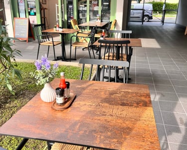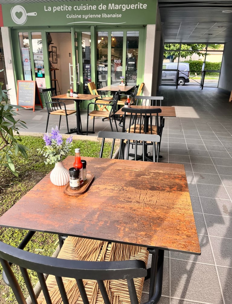Nous faisons traiteur et sommes un restaurant principalement en terrasse. Nous avons un mange-debout en intérieur limité à 3 places.